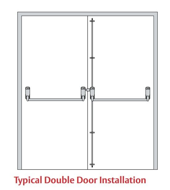 Panic Exit Device allows for both doors to be locked closed and permits emergency exit from both doors (e.g. where emergency or panic situation could occur).