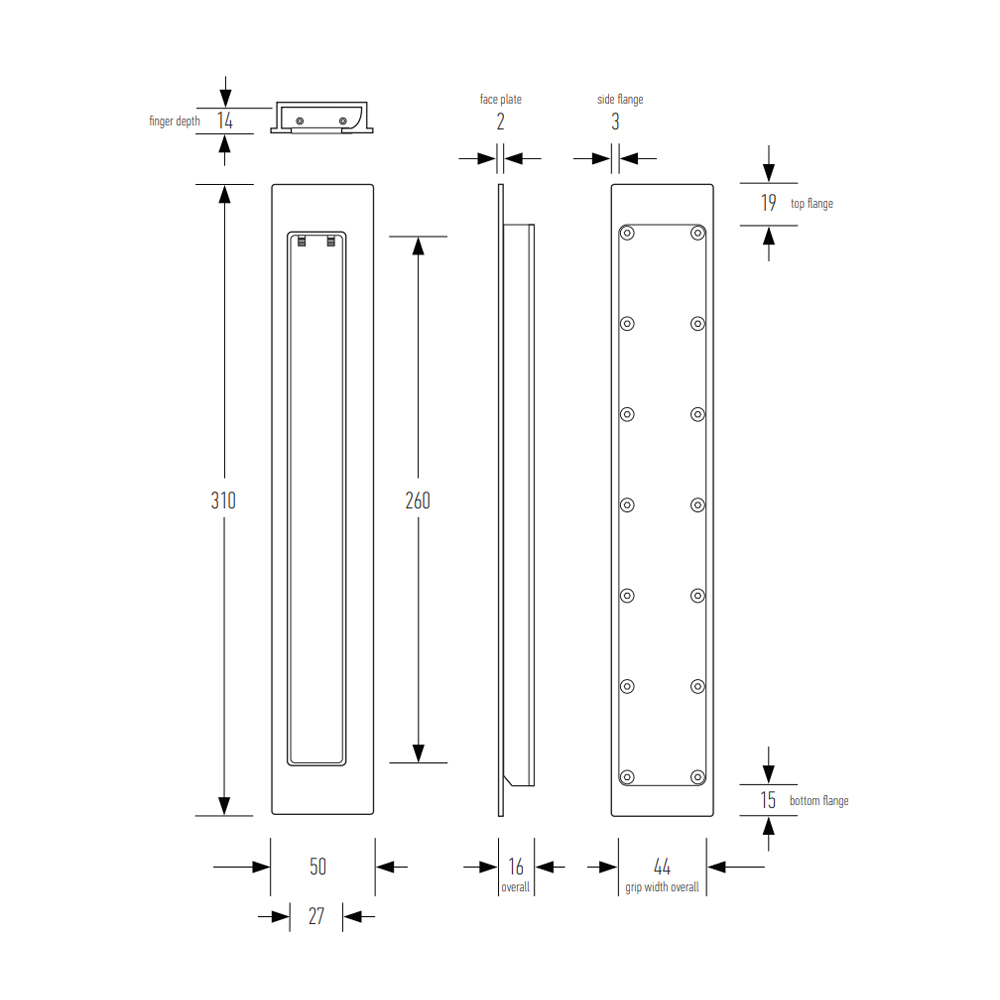 - A larger format and a deeper internal grip along one side perfect for bi-folding, hnge or pivot door sets, or where large, heavy sliders need extra finger grip to pull the door