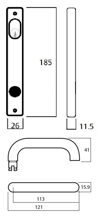 - 1 x Lockwood 4800 Series Square End Narrow Plate External Furniture Matt Black (4901/70MB)