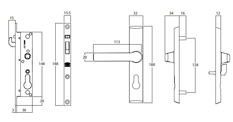 Lockwood Lock 3 Point Kit Suits 8654 Hinge Security Door Locks Stainless Steel 8654-3PK