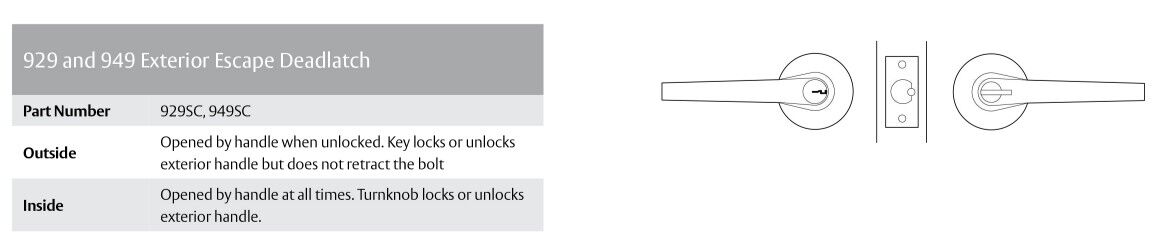 - Commercial grade exterior escape leverset