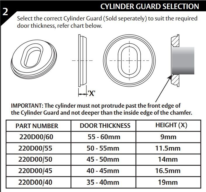 Lockwood Cylinder Guard Satin Stainless - Available in Various Door Sizes