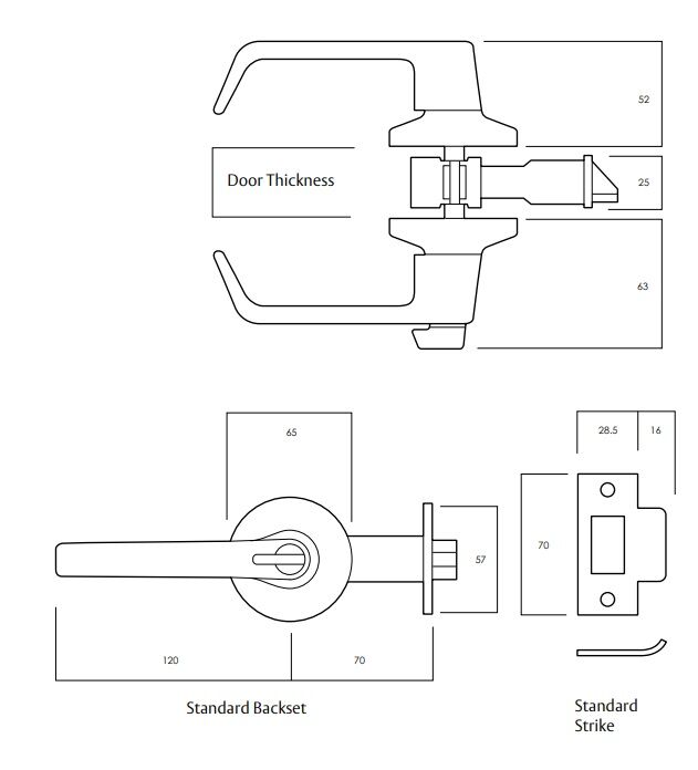 - Latch: 70mm backset