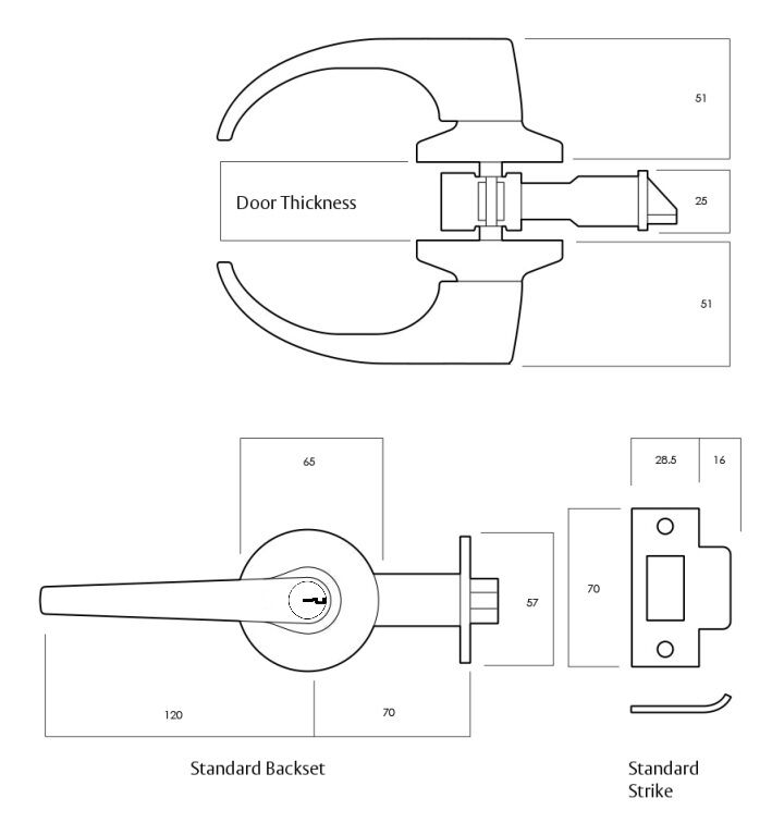 Glass Door Function - Outside key locks and unlocks both levers. Inside key locks and unlocks both levers.