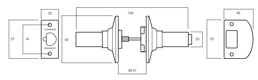 Lockwood Symmetry Privacy Set District Lever Set Chrome Plated 7542CP