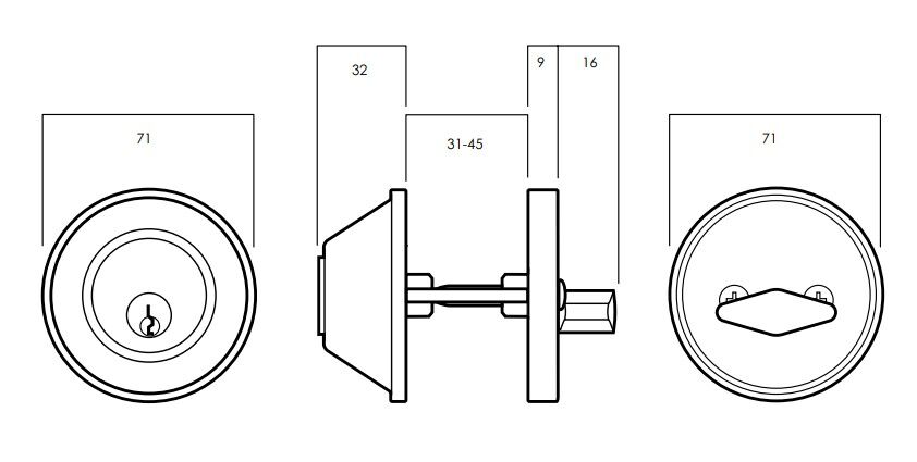Single Cylinder Deadlock Function - on the outside, there is a keyed cylinder, while on the inside, the door is locked and unlocked with a thumb turn. In the event of an emergency, the inside thumb turn provides for a quick departure.