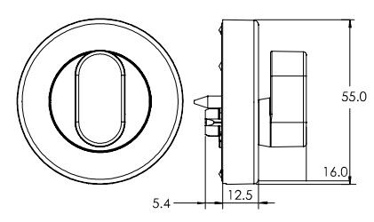 Turn Snib Function - on privacy and locking doors, an oval turn snib on a round backplate actuates a privacy bolt, lock hub, or snib adaptor.
