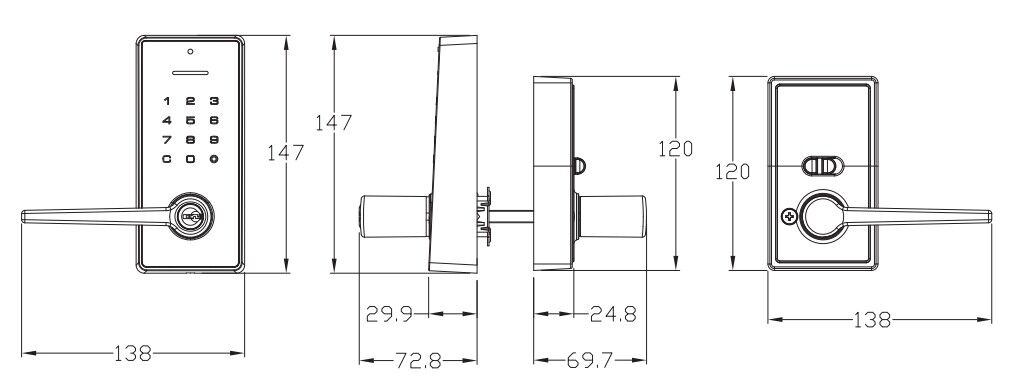 Digital Door Lock designed for medium to heavy duty applications. Its full size lever handles and its large 10 digit keypad enables to control access in a wide variety of applications.